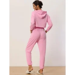 Cheibear Womens 2 Piece Outfits Sweatsuit Outfits Hooded Crop Sweatshirt And Jogger Tracksuit Set