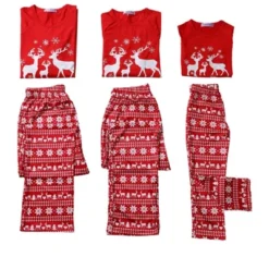 Cheibear Christmas Deer Loungewear Long Sleeves Tee Plaid Pants 2 Piece Family Pajama Sets
