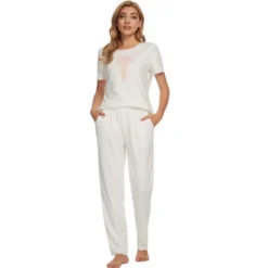 Cheibear Womens Floral Pattern Pajama Set Short Sleeve Shirt And Long Pants Cute Print Sleepwear