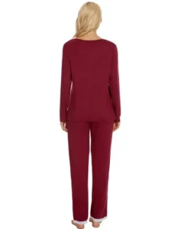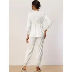 Cheibear Womens Long Sleeve Lace Trim Satin Button Shirt Pants Matching Couple Pajama Sets Sleepwear