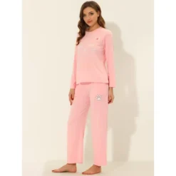 Cheibear Womens Pajama Set Nightwear Lounge Cute Cat Long Sleeve Tops With Pants Sleepwear