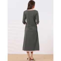 Cheibear Women’s 3/4 Sleeve V Neck Full Length Sleep Nightdress With Pockets