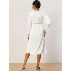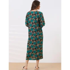 Cheibear Womens Pajamas Loungewear Long Sleeve Round Neck Midi Nightgown