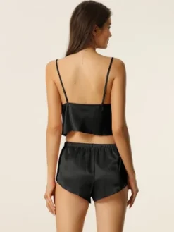 Cheibear Womens Satin Pajamas Cowl Neck Sleeveless Crop Cami Sleepwear With Pants Sliky Lounge Set