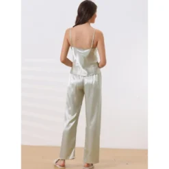 Cheibear Womens Satin Sleepwear Cowl Neck Cami Top With Long Pant PJ Loungewear Silky Pajama Set