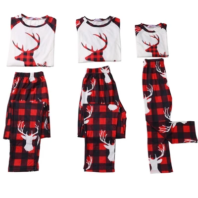 Cheibear Christmas Deer Long Sleeve Tee And Plaid Pants Loungewear Family Pajama Sets