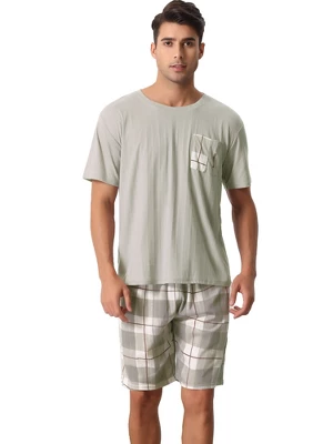 Cheibear Men’s Sleepwear Short Sleeve T-Shirt With Shorts Plaid Couple Pajama Sets