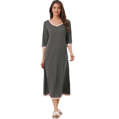 Cheibear Women’s 3/4 Sleeve V Neck Full Length Sleep Nightdress With Pockets