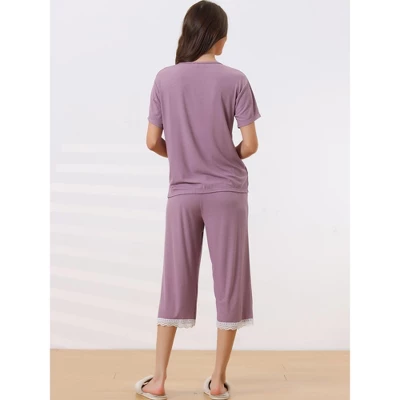 Cheibear Women’s Modal Loose Summer Lace Trim Short Sleeve Carpri Pajama Set