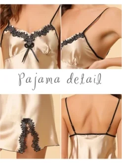 This mini nightgown has no Chest Pads. Great for loungewear, nightwear, sleepwear, home bedroom, and daily wear. This loungewear nightdress for women is constructed of super smooth satin fabric, comfy, breathable, and skin friendly, and with an adjustable spaghetti strap, makes it convenient to take on/off, keeping you pretty and comfortable all day. Featuring a mini-length cami dress design, v-neck lace, and soft comfort, it makes you feel cozy all night, and enjoy a comfortable sleep and sweet dream. No matter the cozy bedtime, casual home relaxation, laze afternoon, or comfy bath, the soft and lightweight women’s nightdress can company with you all the time. This mini-length lady’s nightdress is perfect for slumber parties, pajama nights, or daily wear or as a holiday gift for Mother’s Day, Thanksgiving, Christmas, or a birthday.
