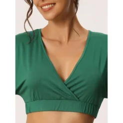 - Faux wrap v-neck, flare short sleeve, and crop top, perfect choice for women who want to feel cozy and look good when they are enjoying cozy lounging time