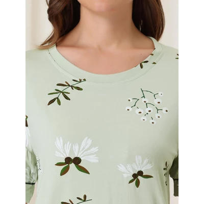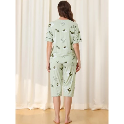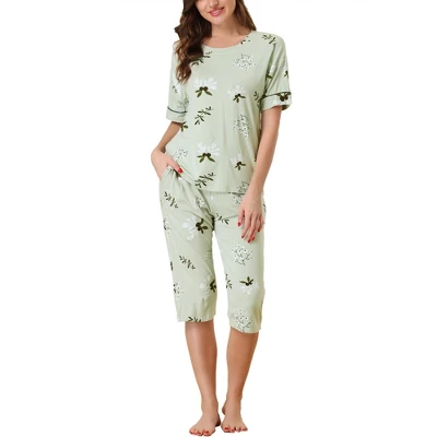 Cheibear Womens Capri And Short Sleeve Shirt Floral Lounge Set Nightwear Soft Sleepwear Pajama Sets