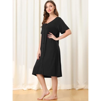 Cheibear Womens Modal Nightshirt Soft Button Down Nightgown Short Sleeve Pajama Sleepshirt