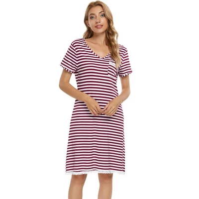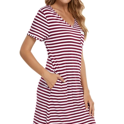 This style of stripe lounge dress it’s easy to put on or take off, which can give you a light and simple dressing experience,keep you nice and comfortable all day.The super soft pajamas dress for women is lightweight, breathable and comfortable to wear as.This pajamas dress is casual,even if guest visits suddenly, you won’t feel embarrassed, make your home life more convenient.The lounge dress also be a perfect gift for your mom, wife,daughter, girlfriend,or friends as lounge wear,sleepwear, these casual sleepwear dress are good choice for women.