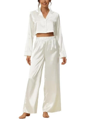 - The cropped shirt makes women casual and also has a touch of sweet temperament, wide-leg pants, soft satin fabric