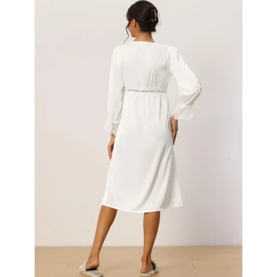 - This loungewear is made of solid color, V-neck, knee length, cuff neckline, and waist lace edge design, making you pretty and comfortable all day long
