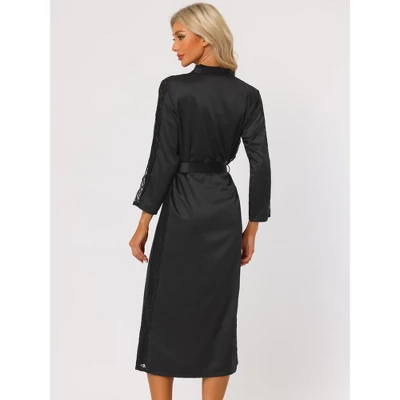 Cheibear Womens Satin Nightwear Robe And Nightgown Sets Lace Long Sleeve Bridesmaid Wedding Bride Bathrobe