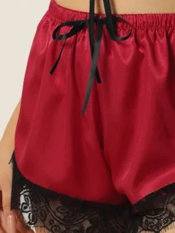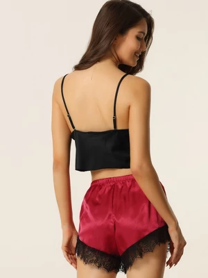 - 2 Pieces of a sleepwear set, including a cami top and shorts with ice silk lace