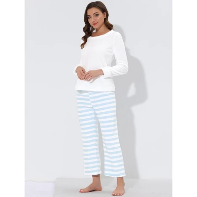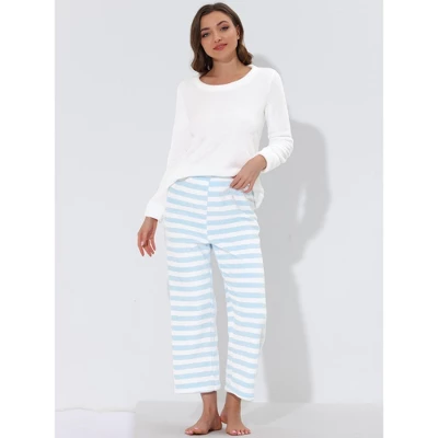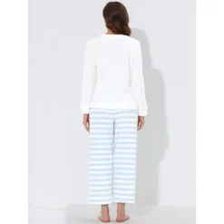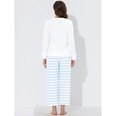 Cheibear Womens Sleepwear Flannel Lounge With Stripped Pants Winter Long Sleeve Pajama Set