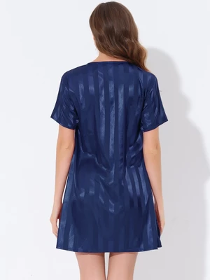 Great for loungewear, nightwear, sleepwear, home bedroom, daily wear. This loungewear pajamas dress for women is constructed of super soft fabric, which is comfy, breathable, and skin friendly and makes the pajamas convenient to take on/off, keeping you pretty and comfortable all day. Featuring the striped print, v-neck, short sleeves, mini length, it makes you feel cozy all night, and enjoy a comfortable sleep and sweet dream. No matter the cozy bedtime, casual home relax, laze afternoon, comfy bath, the soft and lightweight women’s nightdress could company with you all the time. This mini-length ladies nightdress is perfect on slumber parties, pajama nights or daily wear or as a holiday gift for Mother’s Day, Thanksgiving, Christmas, or birthday.