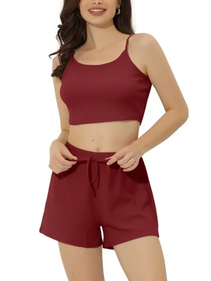 - Cami Pajama Set, Stretch Fabric, Frill Trim, Short Pants with Elastic Waist and Bow Decor