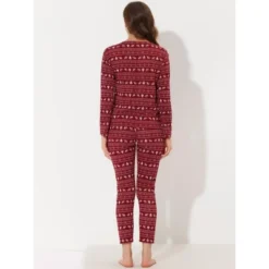 Cheibear Womens Sleepwear Pajama Long Sleeve Winter Nightwear Christmas Pj Elk Lounge Set